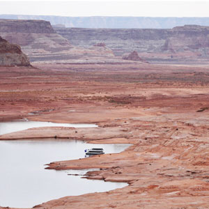 The greatly diminished water of Lake Powell; the 2nd largest reservoir in the US